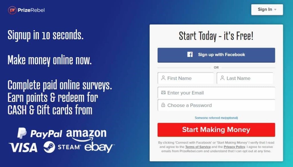 Offers Amazon, eBay, and Starbucks voucher and PayPal cash,